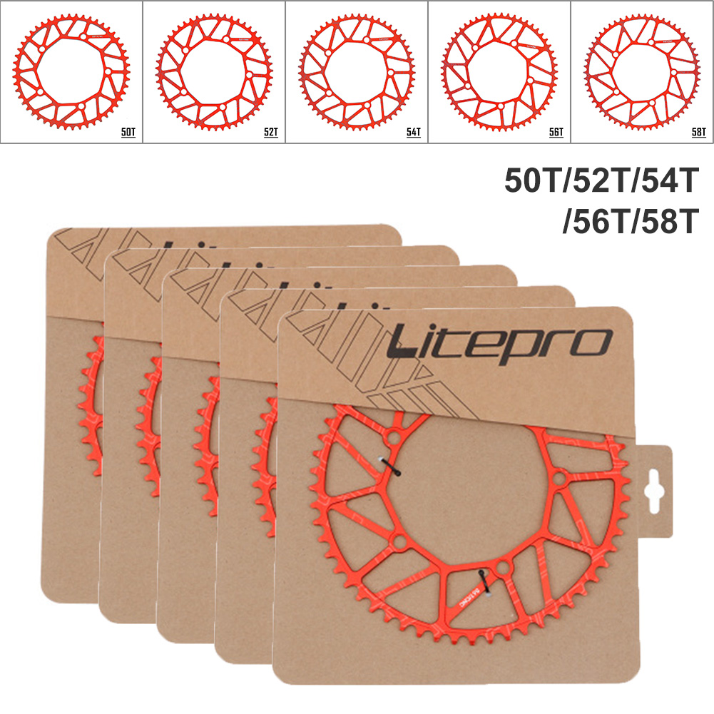 Litepro Hollow 130BCD Folding Road Bike Chainring 50-58T Narrow Wide Chainwheel Specification: Name:Positive and negative tooth disc Material: AL7075-T6 P.C.D:BCD 130 mm Teeth: 50T,52T,54T,56T,58T Color: Red Weight:50T 85g, 52T 88g , 54T 92g , 56T 98g, 58T 103g . Diameter:50T 208mm, 52T 216mm, 54T 224mm, 56T 231mm,58T 242mm Package include:1pcs chainring Features: *Made of high quality material,ensure maximum strength and durability for long lasting usage. *Super light and Simple to install *Compatible with BCD 130mm 5 arm chainring, fit for 5 arms cranks, also fit for folding bike *Fit for 9s 10s 11speed. Note: *The real color of the item may be slightly different from the pictures shown on website caused by many factors such as brightness of your monitor and light brightness. *Please allow slight manual measurement deviation for the data.