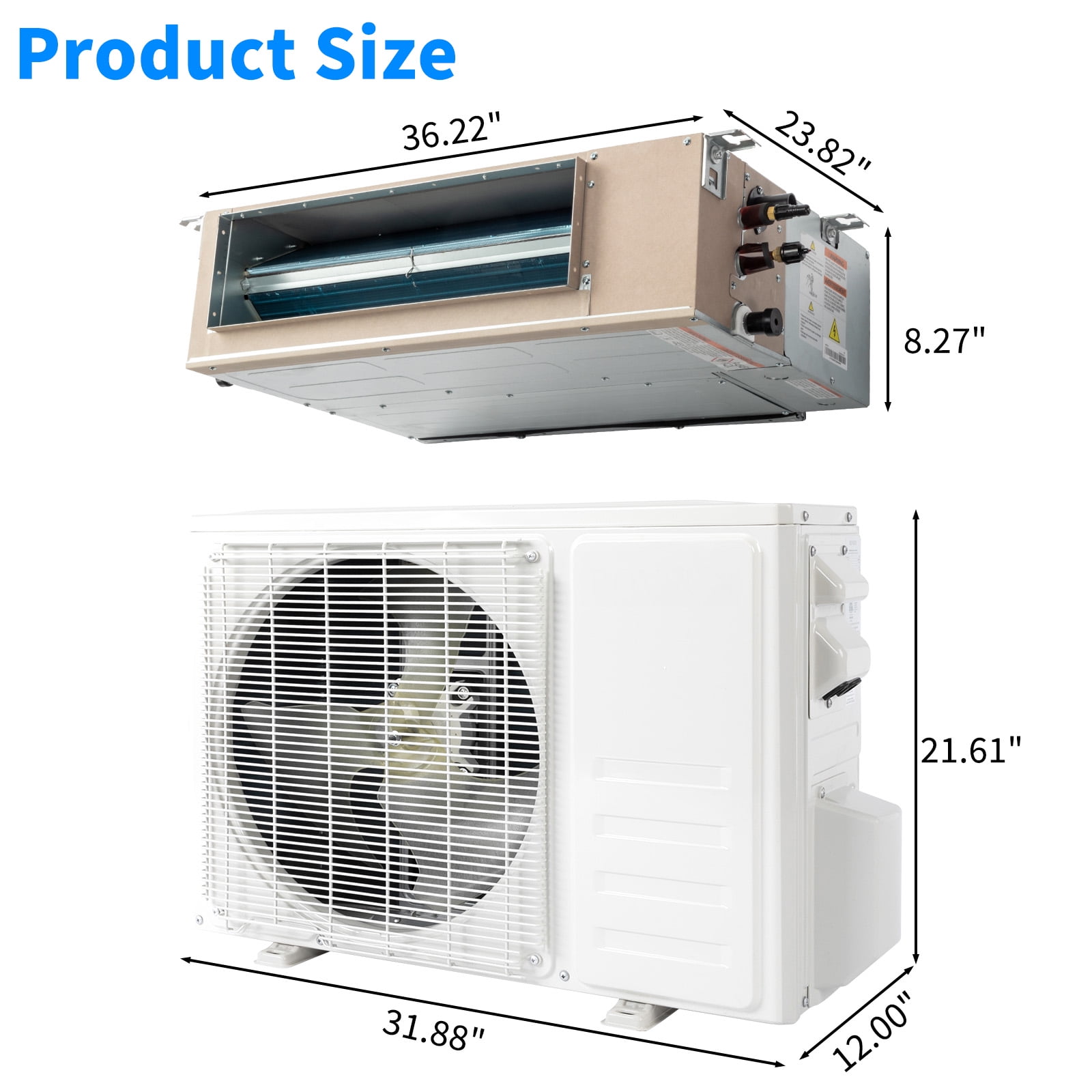 $25.9917000 BTU Smart WIFI Ducted Mini Split AC/Heating System with Inverter, 23 SEER2 Concealed Duct Air Conditioner with Wired Controller, Pre-Charged Condenser, Heat Pump & Installation Kit, 230V