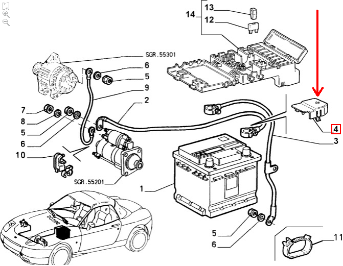 COUVERCLE POSITIF DE PÔLE DE BATTERIE FIAT PALIO SIENA BARCHETTA STRADA - ALFA ROMEO SPIDER GTV