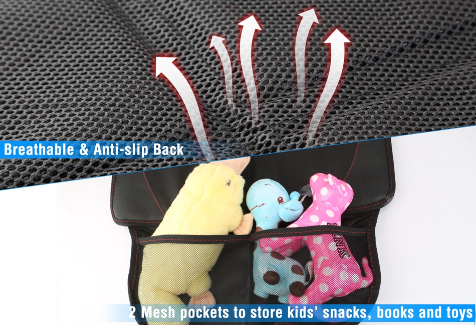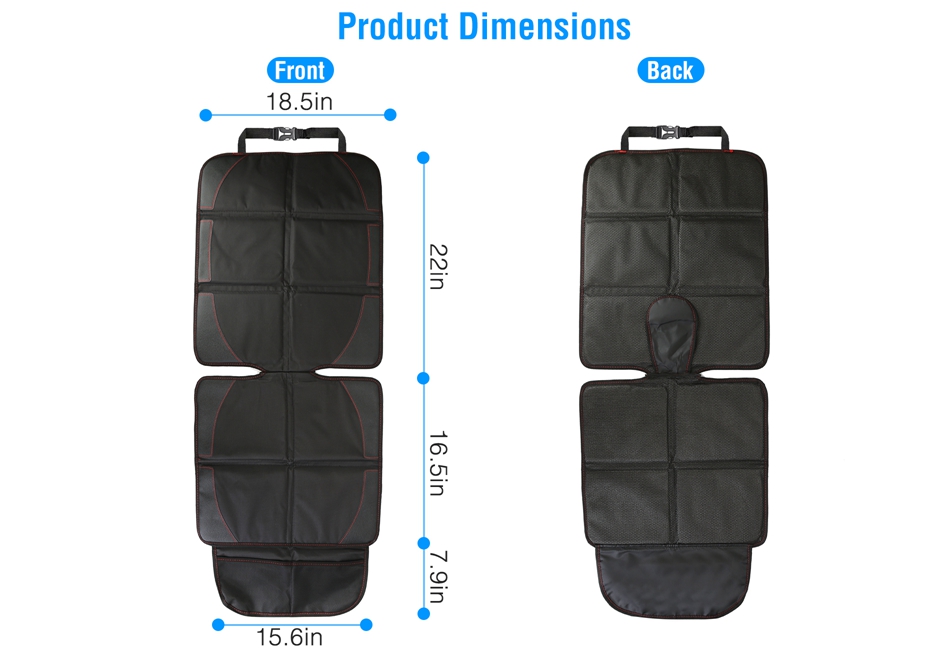 - Multifunctional Protector:This large sized protector is suitable for baby car seat and even for pets as seat cover. Seat part:16.5x18.5in;back part:18.5x22in. It works well on both front seat and backseat,ideal for family travel. Moreover,the mesh pockets at the bottom allow you to store children’s toys,books,and snacks.
