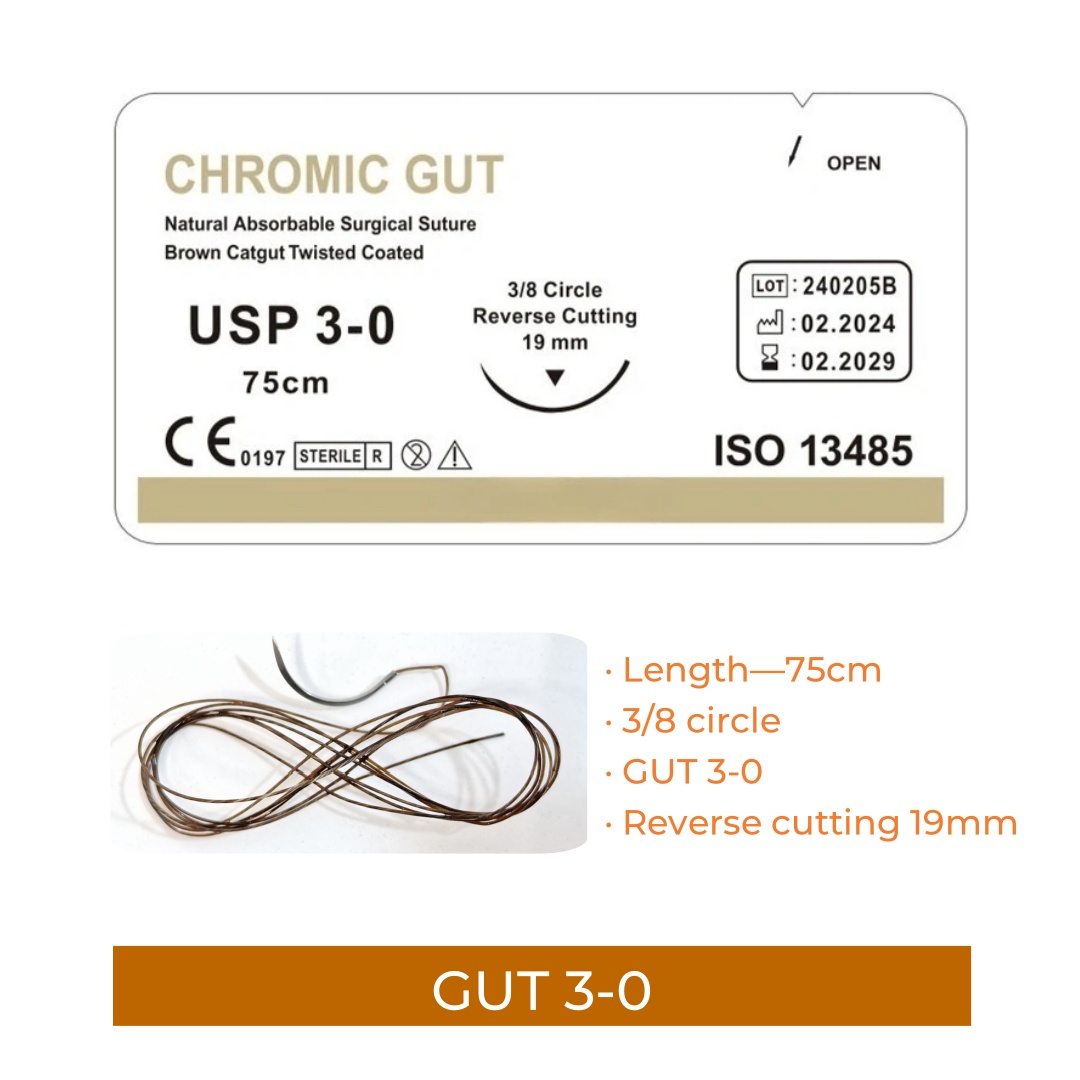 Chromic Gut Absorbable Dental Surgical Sutures Natural Needled Traning Reverse