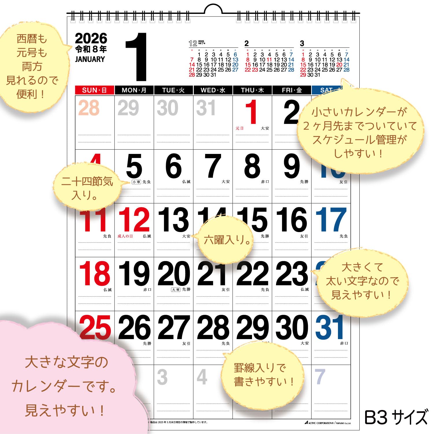 Active Corporation 2026 Wall Calendar, Big Letters, B3, 26Acl-55, Starts Januar_