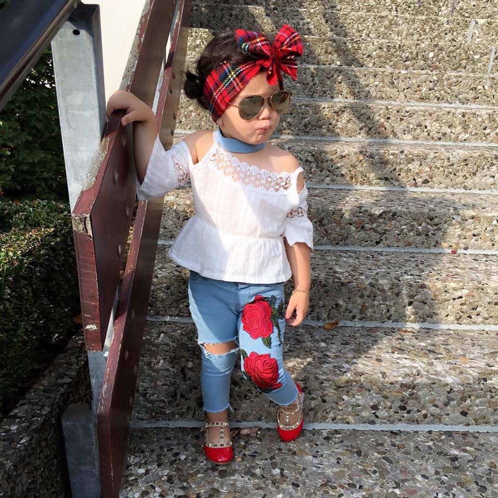 DescriptionProduct Features: Sleeve Length:Short Sleeve Sleeve Type:Spaghetti Strap Neckline:Slash neck Material:Cotton Fabric Type:Blended Pattern Type:Floral Season:Summer Department:Girls Set Includes:Jeans Number of Pieces:2 Piece Character:Breathable Kids Suit Style:Casual Sets Type:Outfit/Set Vintage:No Age Range:4-6y Garment Care:Machine Washable Bottom Type:Jeans Size: