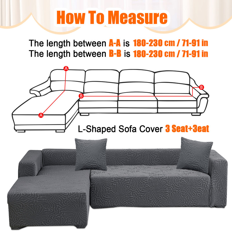 Please select the correct size of the sofa covers according to the measurement instructions on the photos. The L-shaped modular sofa furniture consists of two parts, the main sofa and the deck chair . Separately machine washable in shoe wash, does not bleach. Dry at low temperature.