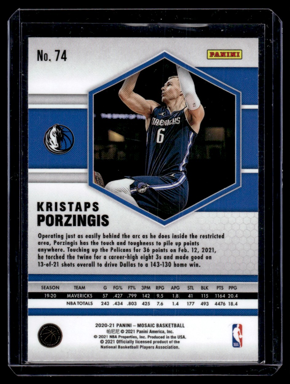 | 2021-22 Panini Prizm Kristaps Porzingis Dallas Mavericks #74 |