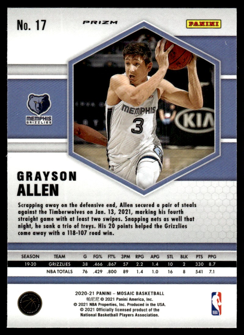 | 2020-21 Panini Mosaic Blue Reacrtive Grayson Allen Memphis Grizzlies #17 |