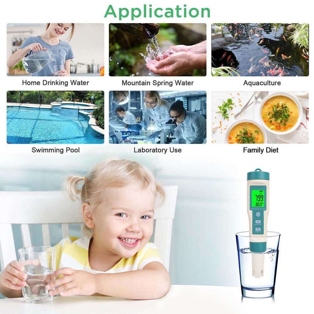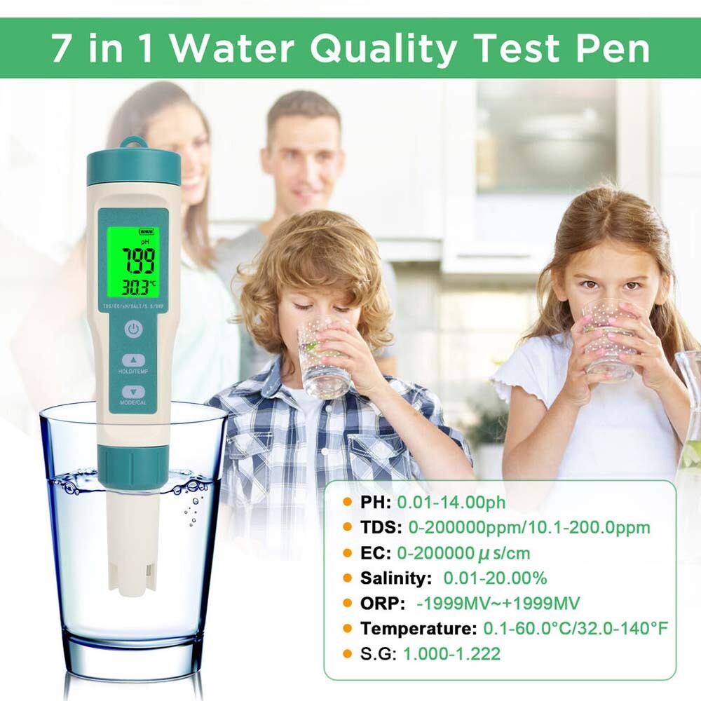 💧 7 in 1: The water quality test pen is a 7 in 1 style. PH, TDS, EC, salinity, ORP, temperature,