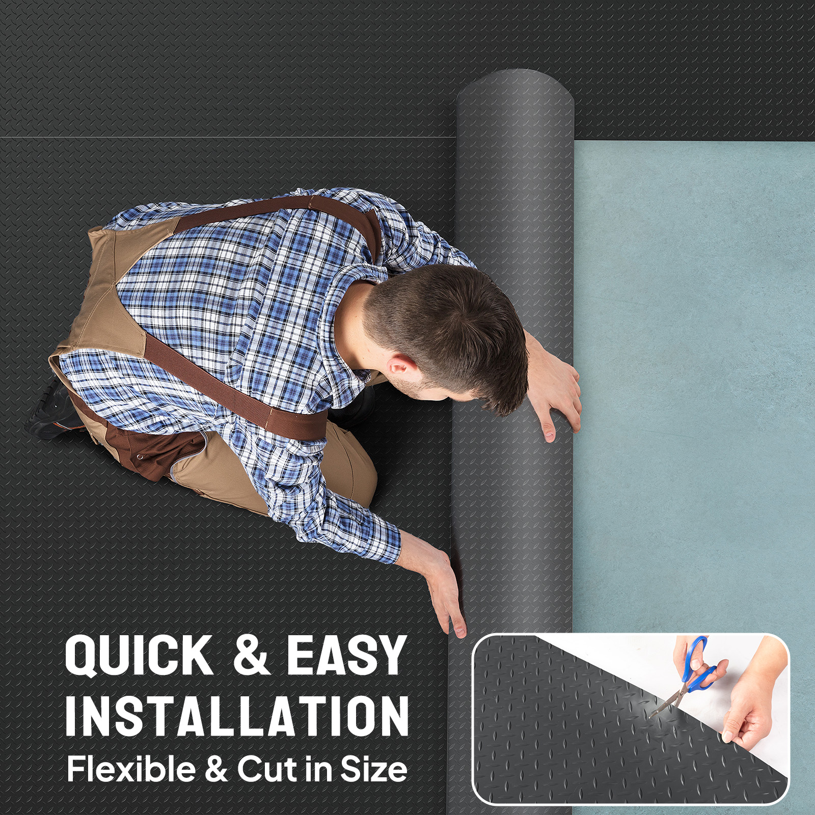 Quick and easy to install by just rolling out the floor mat on the surface for a smooth and even display. It can be cut into any size you want with scissors or utility knife. Economic choice for all floor surfaces requiring protection, durability and low maintenance.