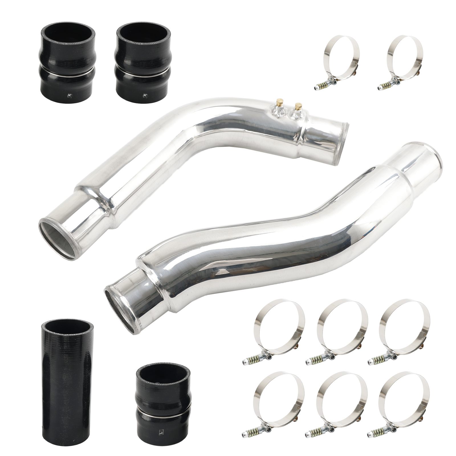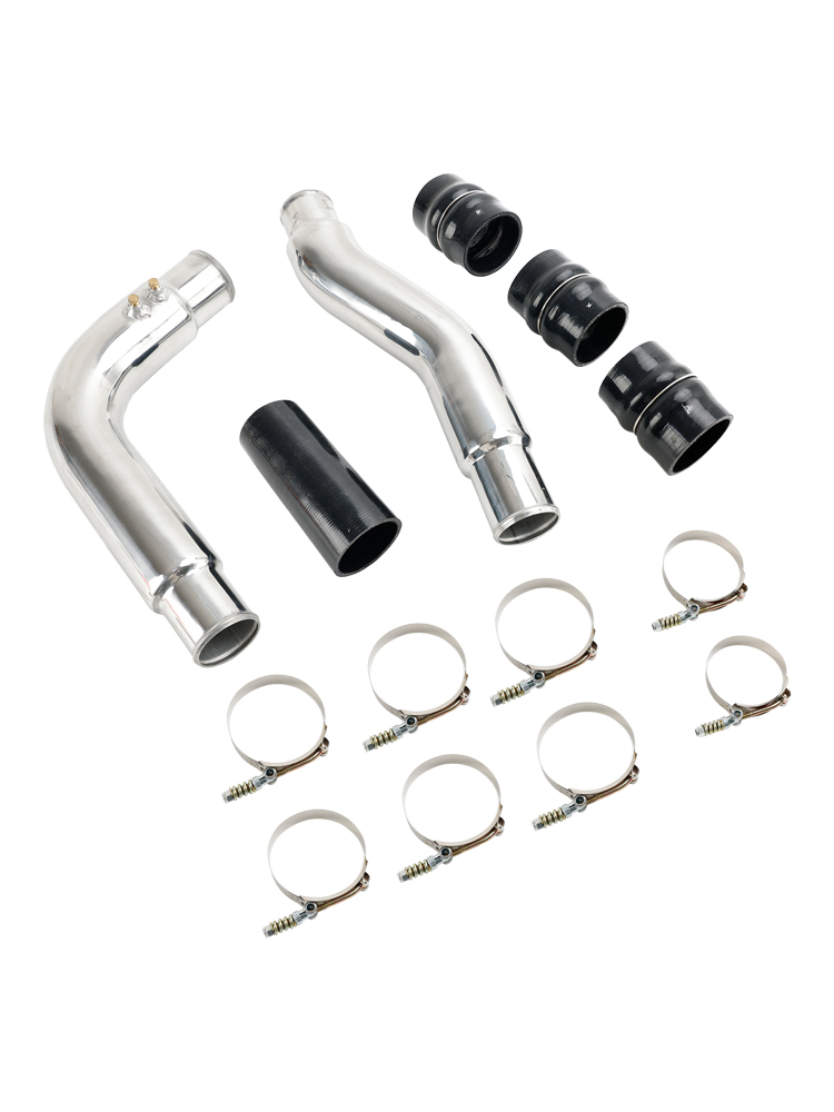 Silver Pipe: Constructed of mandrel-bent aluminum with a polished finish. A 100% CNC-machined 6061 aluminum coupling allows you to retain your trucks factory emissions components and allows for a quick install.