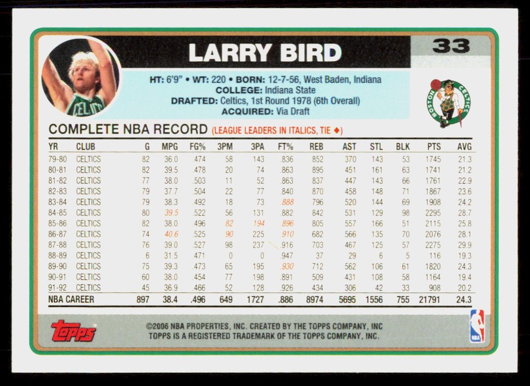 2006-07 Topps Larry Bird Boston Celtics #33