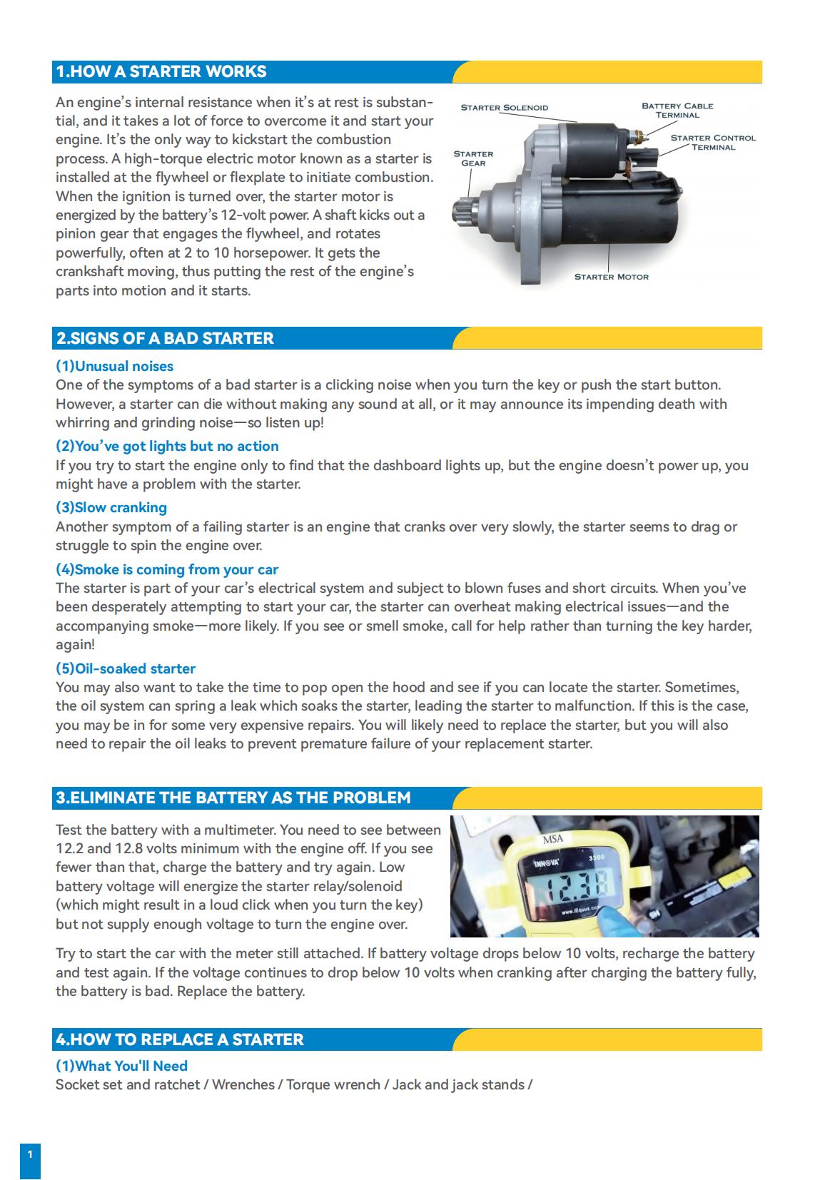 【OE Quality】: A brand new starter manufactured by a professional OEM manufacturer according to OE specifications and ISO quality standards