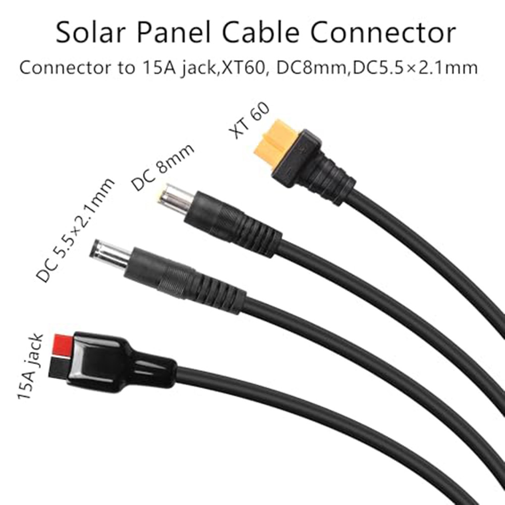*Comprehensive Package: Included in your purchase are multiple cable types: one composite cable for solar panel to  connection, one DC 5.5 x 2.5mm cable, one DC 8mm cable, and one compatible 15A connector cable, providing all the essentials for your solar energy needs.