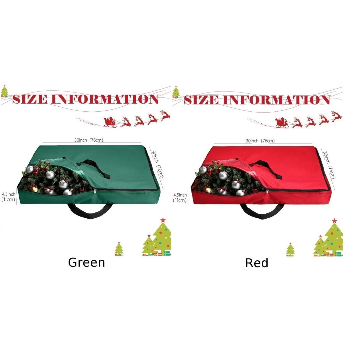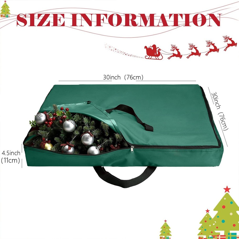 * Design spacieux : avec une taille carrée généreuse de 30 pouces, il peut accueillir différents styles et tailles de couronnes, offrant suffisamment d'espace pour un stockage sûr sans écraser ni endommager vos décorations.