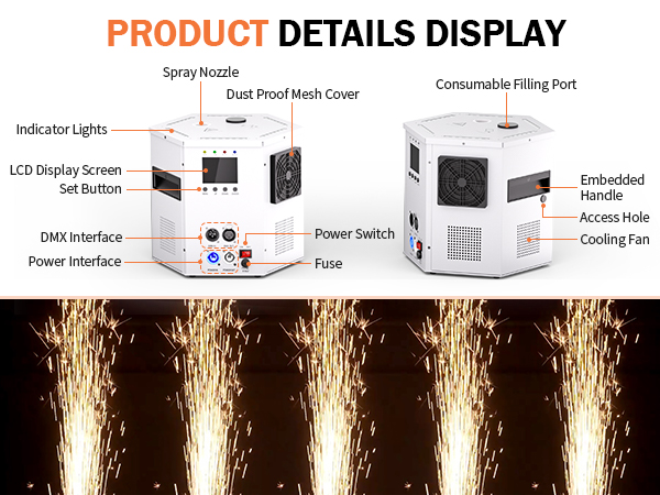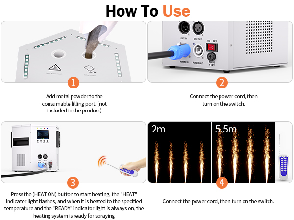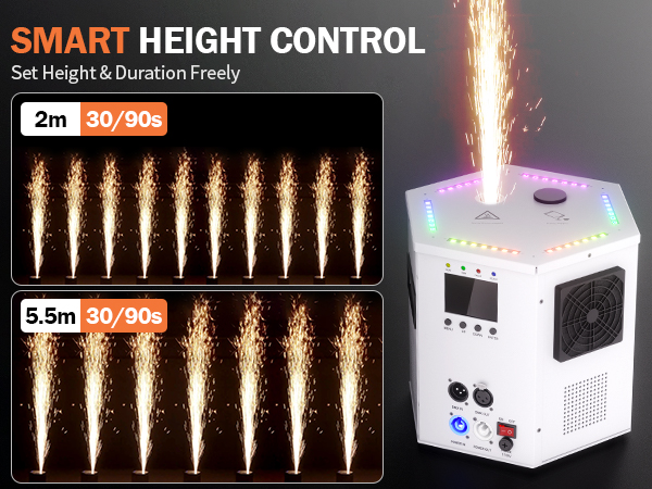 Impressive Performance: Electromagnetic heating delivers dense, vibrant sparks reaching heights up to 5.5 meters (18 feet) for a truly captivating spectacle.