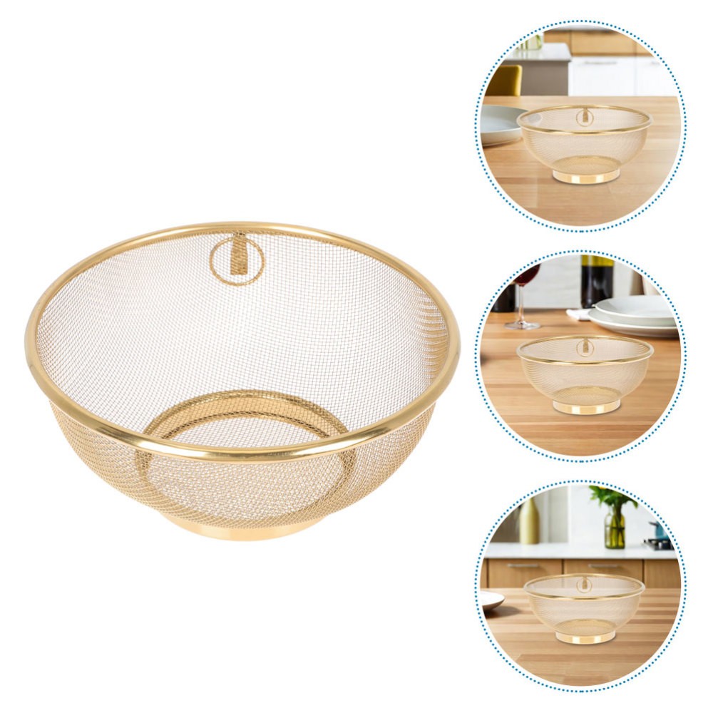 Description . Its smartly designed mesh and sturdy frame facilitate quick drying of kitchenware, fruits, vegetables, or pasta.Utilize this stainless steel strainer basket as a reliable kitchen drain bowl for food washing and draining tasks