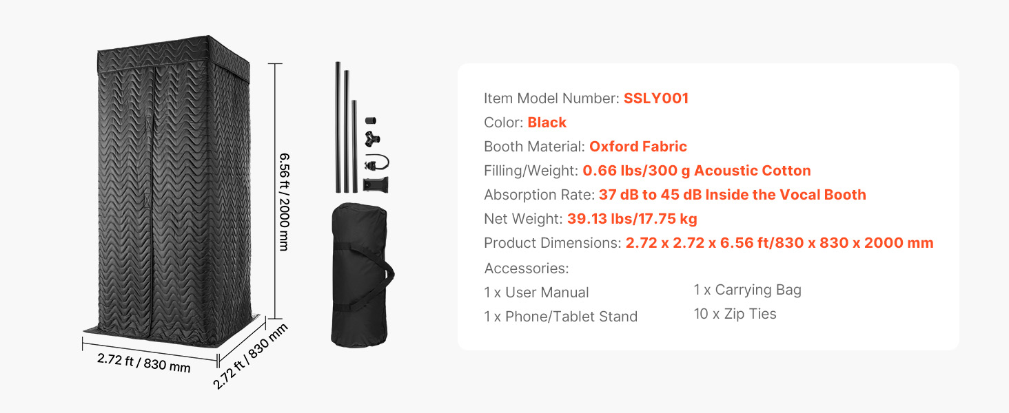 More Space, Less Stress: Measuring 2.72 x 2.72 x 6.56 ft in size, our portable studio booth has space for seated and standing sessions or instrument play, while its compact design lets you set it up in a living room, bedroom, or any unused corner