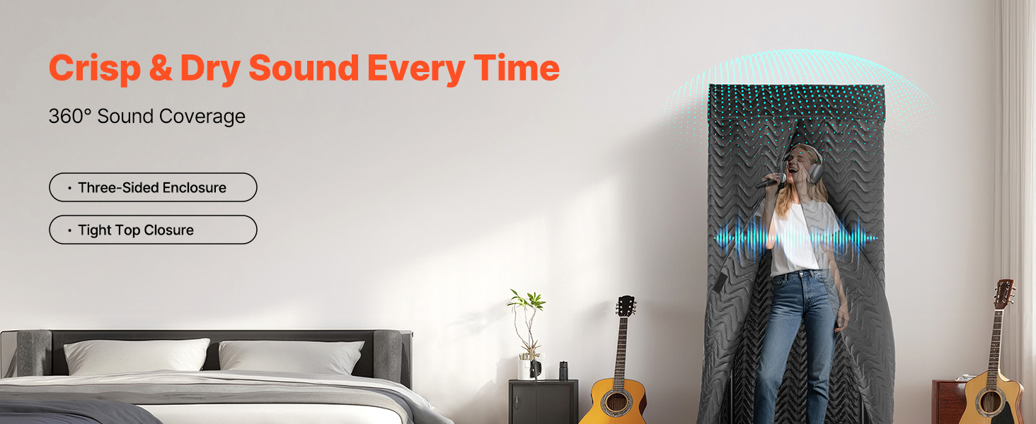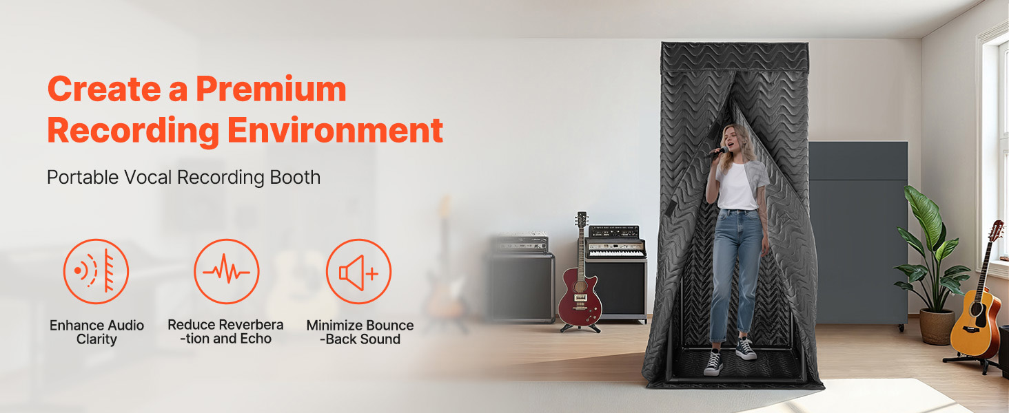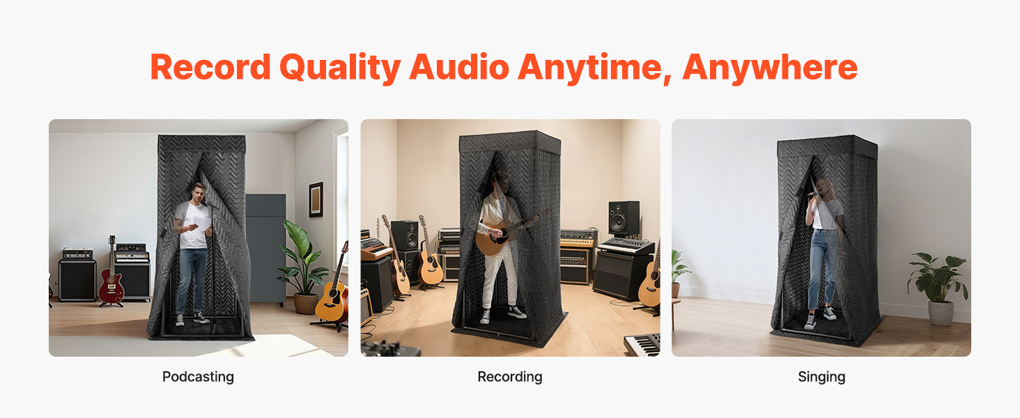 One Booth, Many Uses: Whether you're working in a compact room or open studio, this sound recording booth supports all your creative needs, like podcasts, vocals, and instruments. It is easy to use, focus, and always ready when you are
