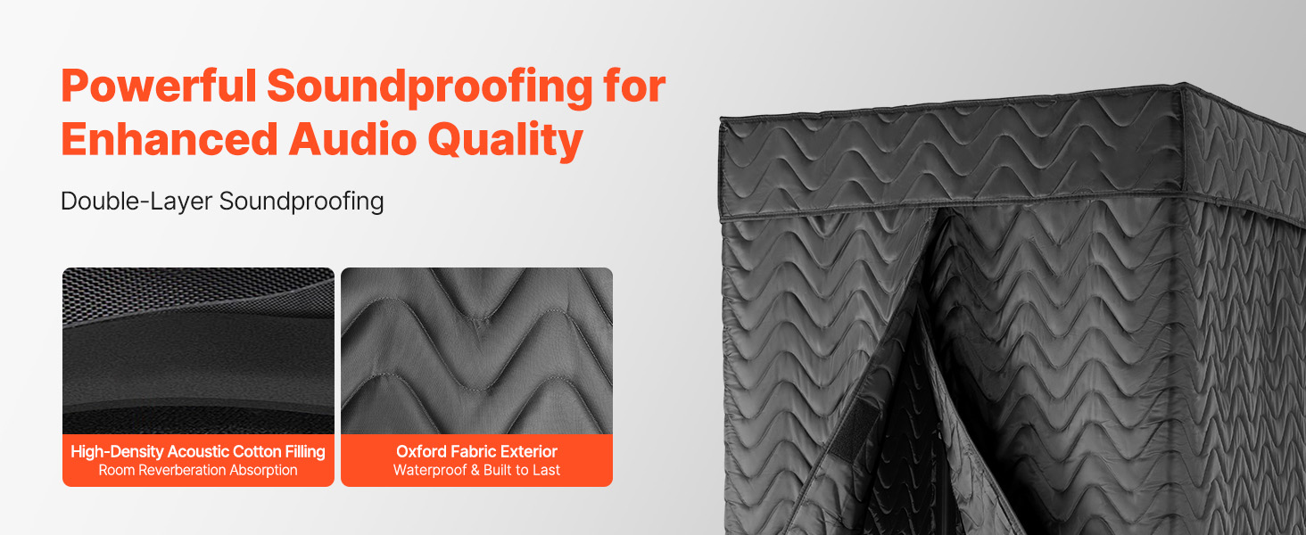 Say Goodbye to Echoes: Built with durable Oxford cloth and acoustic padding, this recording booth for the home studio reduces echo and ambient noise by 90%. It gives you a quiet, immersive recording space, even near traffic or in noisy home setups