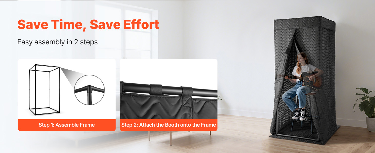 Set Up in Minutes: Our vocal booth for recording uses a full PVC frame, no metal, no buzz. Everything you need is in the box, including zip ties and a step-by-step guide. It's easy to set up, quiet to use, and built for creators on the go