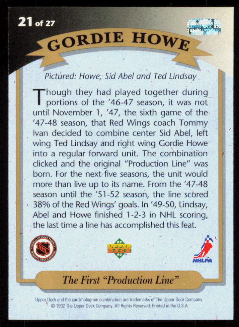 1992-93 Upper Deck Hockey Heroes Gordie Howe Detroit Red Wings #21