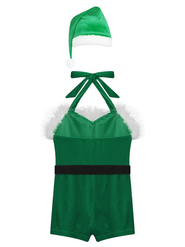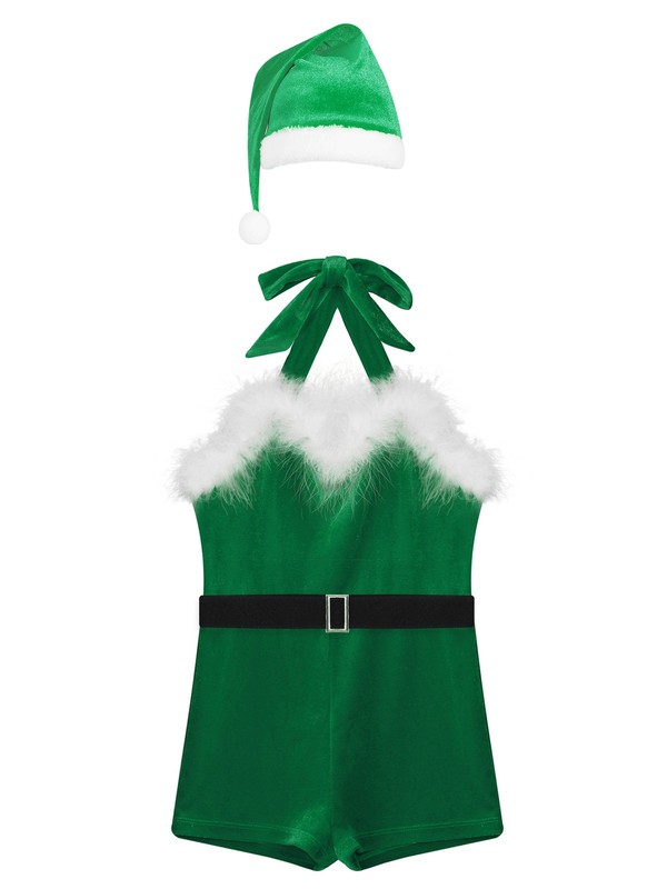 Set Include: 1Pc Christmas Jumpsuit, 1Pc Hat, 1Pc Belt