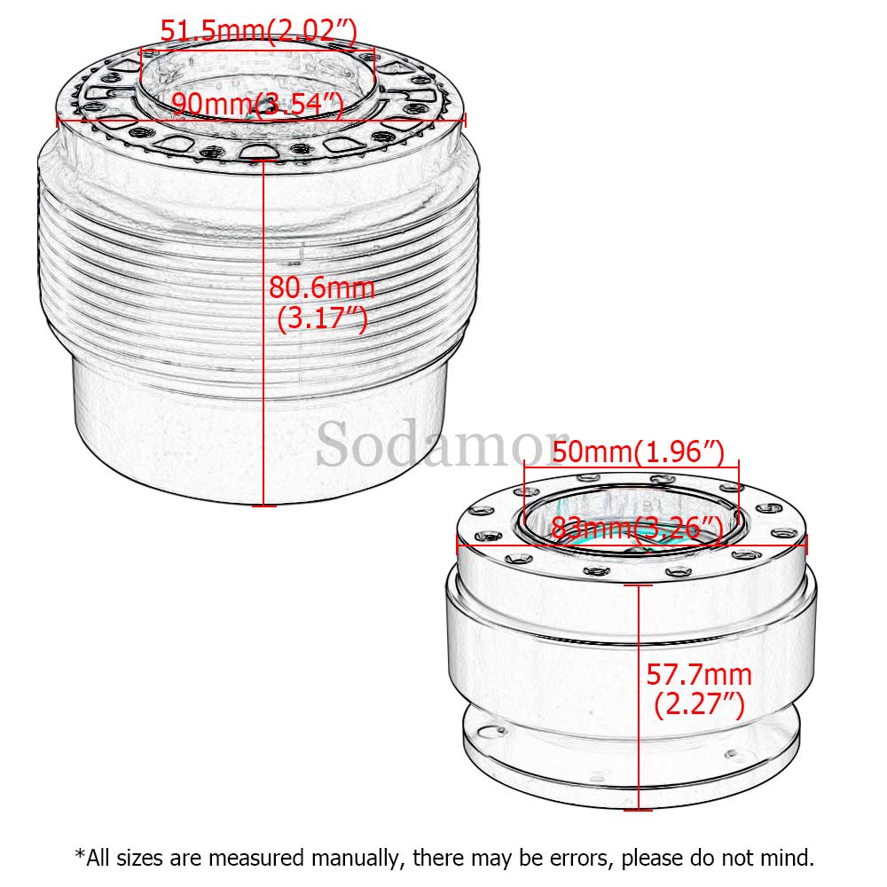 Inside diameter: 2"/50mm, outside diameter:3.27"/83mm, total height: 2.32"/59mm