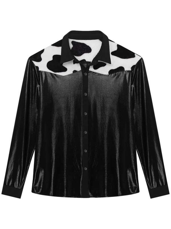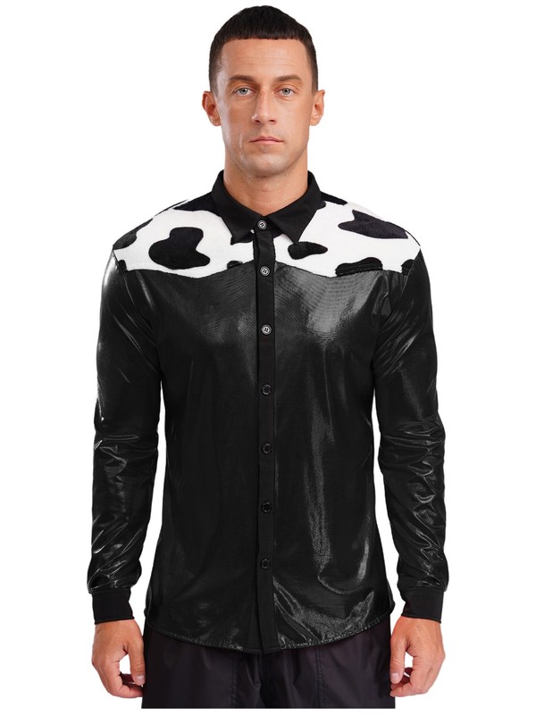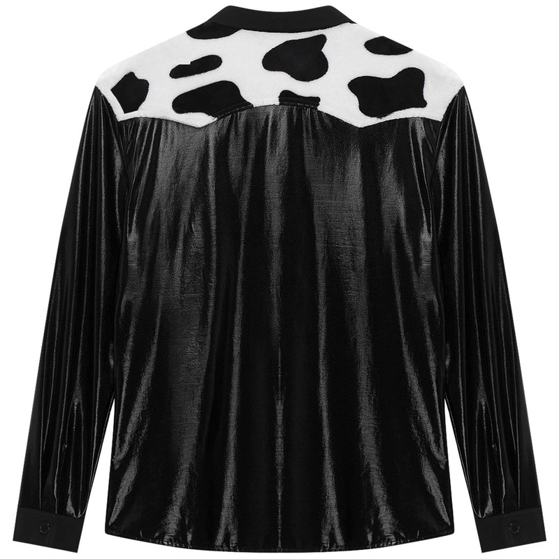 Solid color shirt is adorned with cow pattern, adding a sense of western cowboy style, slim fit.