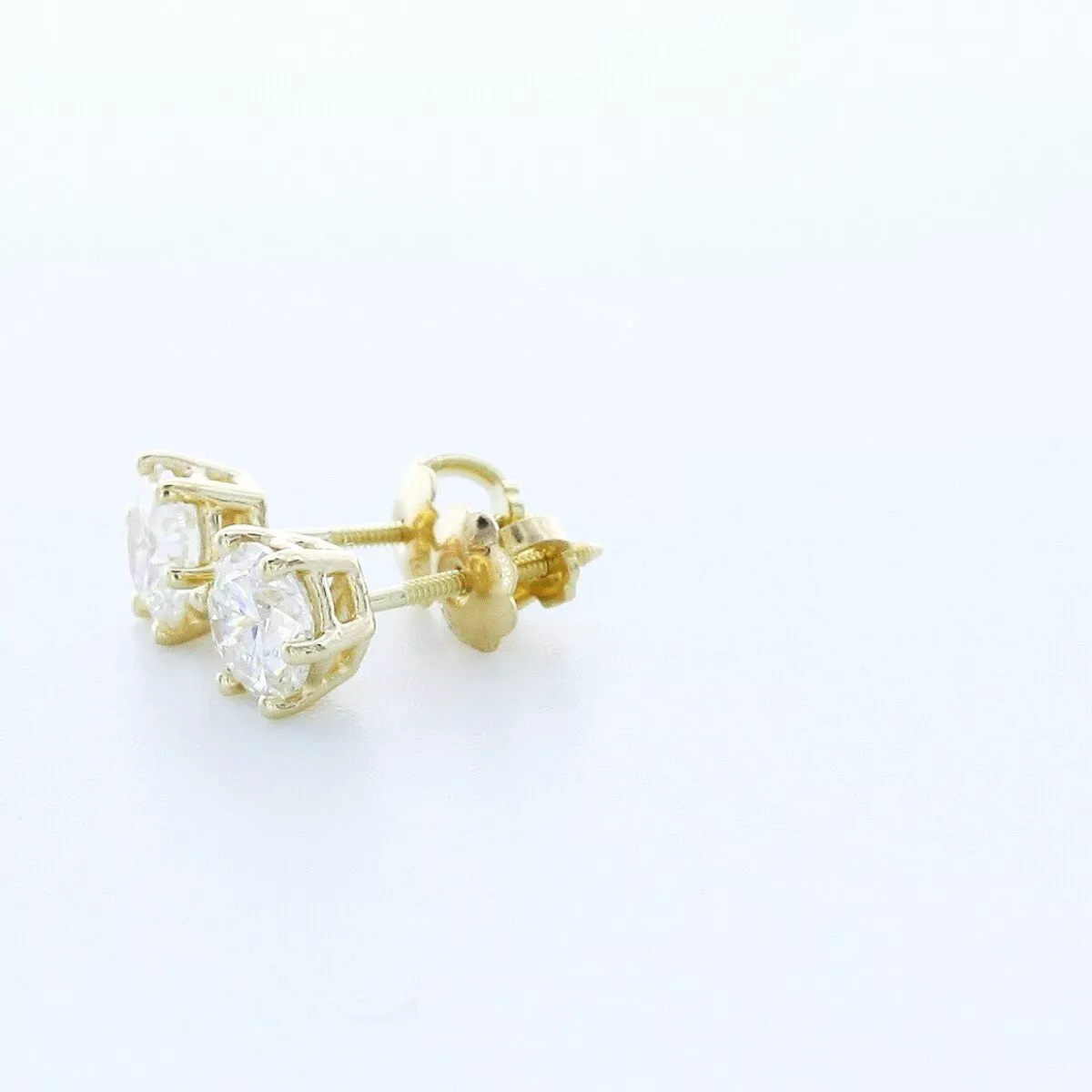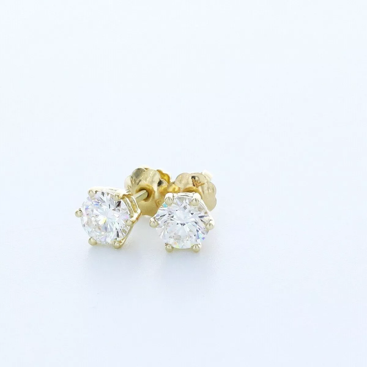 Solid 14K Yellow Gold Stud Earrings Classic AGI Cert 0.95 CT Round Natural Mined Diamond F VS2