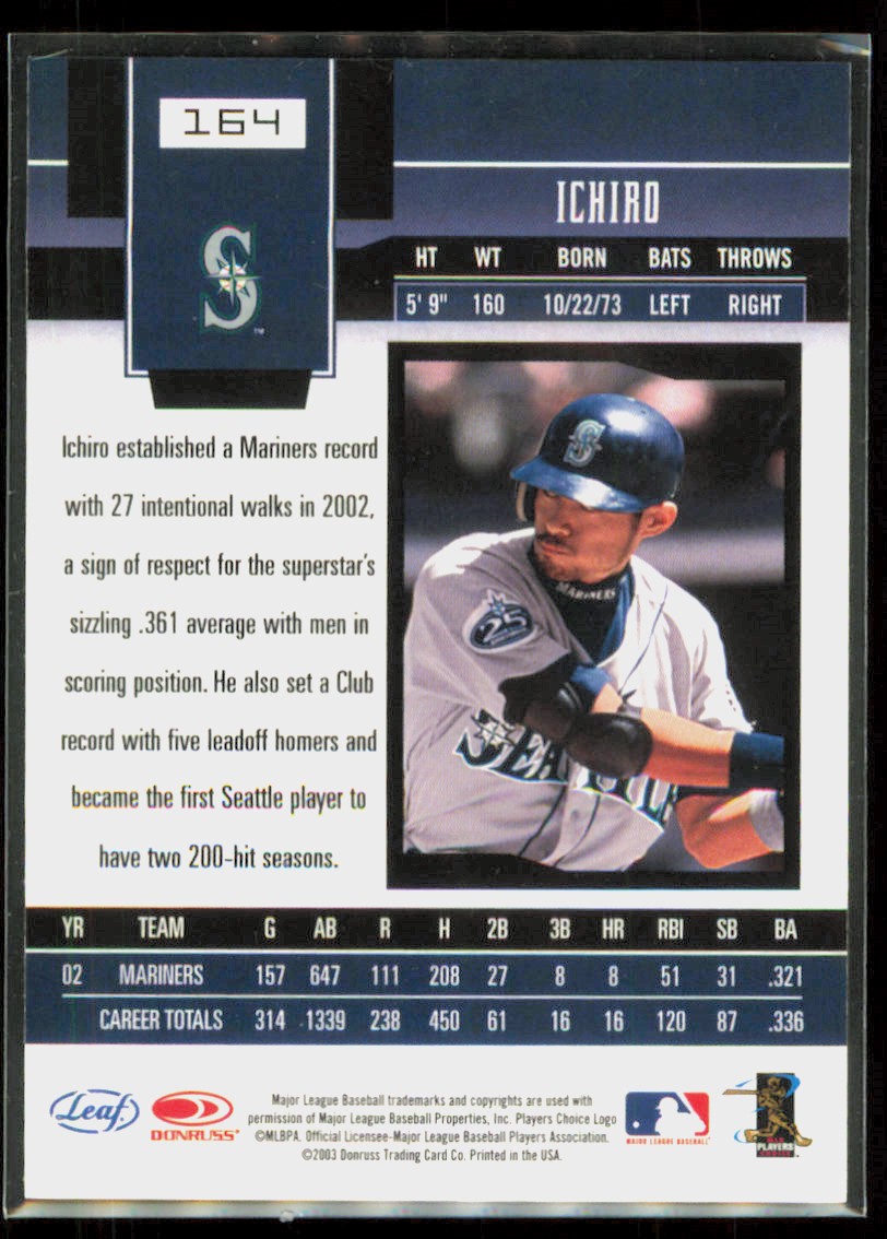 2003 Leaf Certified Materials Ichiro Suzuki Seattle Mariners #164