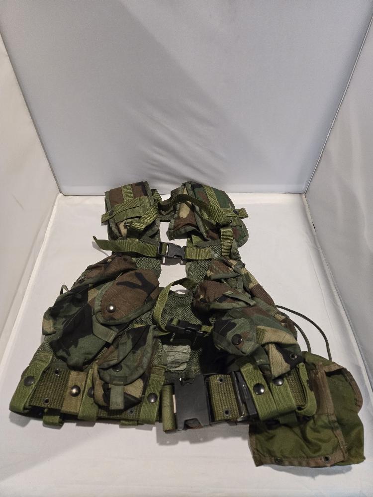 Military Issue Tactical Load Bearing Vest Woodland Camo 8415-01-296-8878 Used piece, that will show signs of use. Please see all pics.