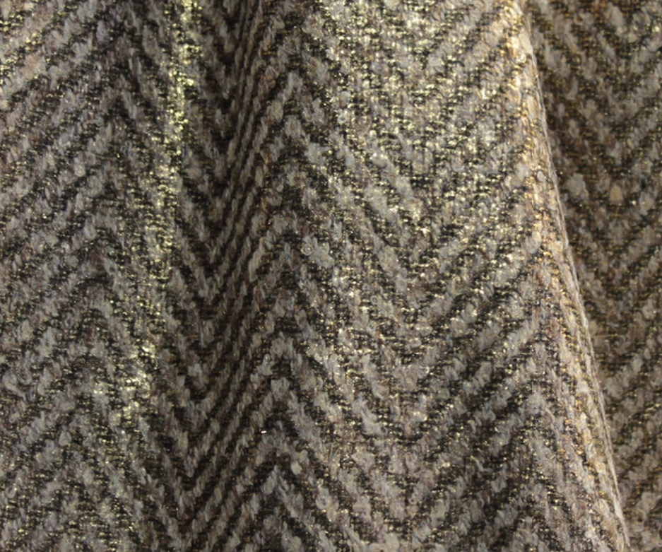 Features a brown and metallic gold chevron pattern