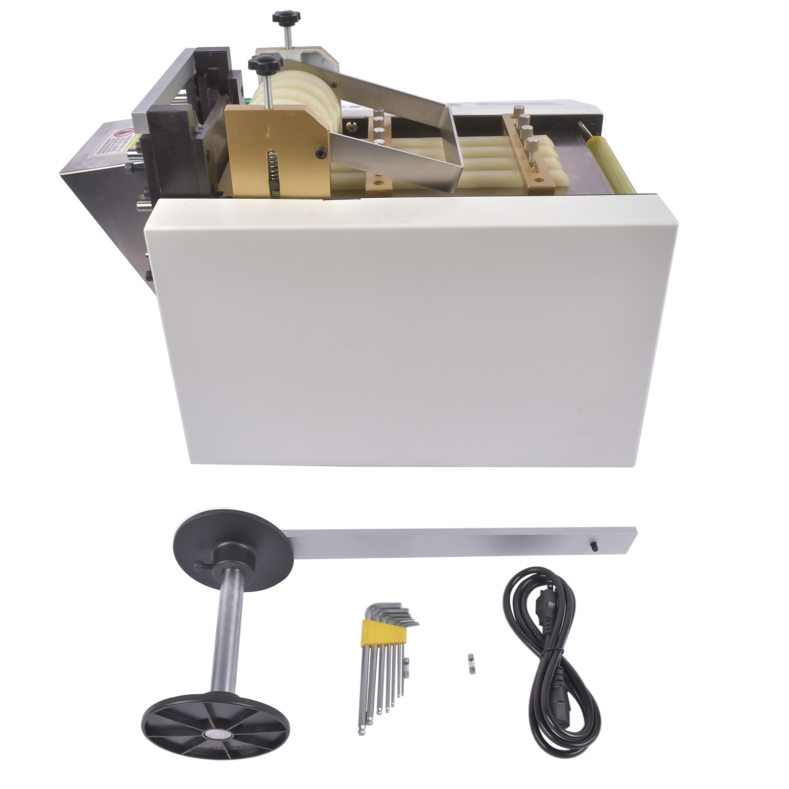350 W Powerful Motor: The 350 W motor of the automatic heat-shrink tube cutter with high efficiency provides a cut speed of 100-120 cut/min (50 mm). There is a dissipation fan for secure, fast heat dissipation.