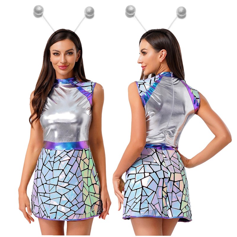 Women Outfits Movie Show Alien Costume Masquerade Dress Cosplay With Headwear