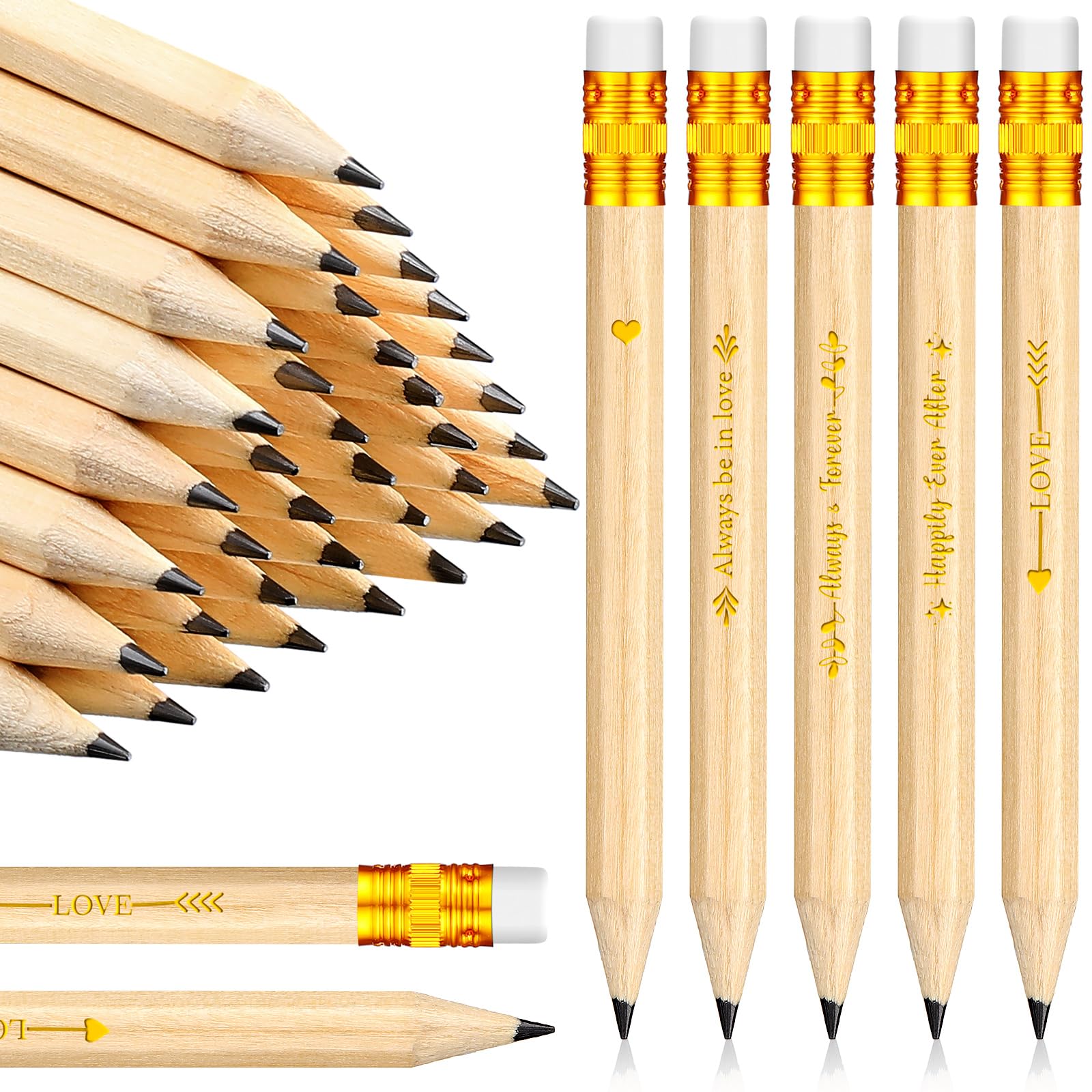 50 Pcs Bridal Shower Pencils Half Golf Wedding Pencils with Eraser 4 Inch Short Pocket Pre Sharpened for Wedding Game Bridal Shower Presents Classroom School(Wood Color)
