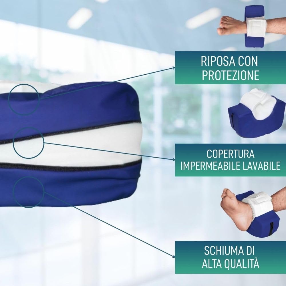 OrtoPrime Confezione da 2 talloni antidecubito impermeabili forma curva, protezione per talloni anti-decubito, cuscini antidecubito ortopedici per piedi (buchi antidecubie), taglia universale