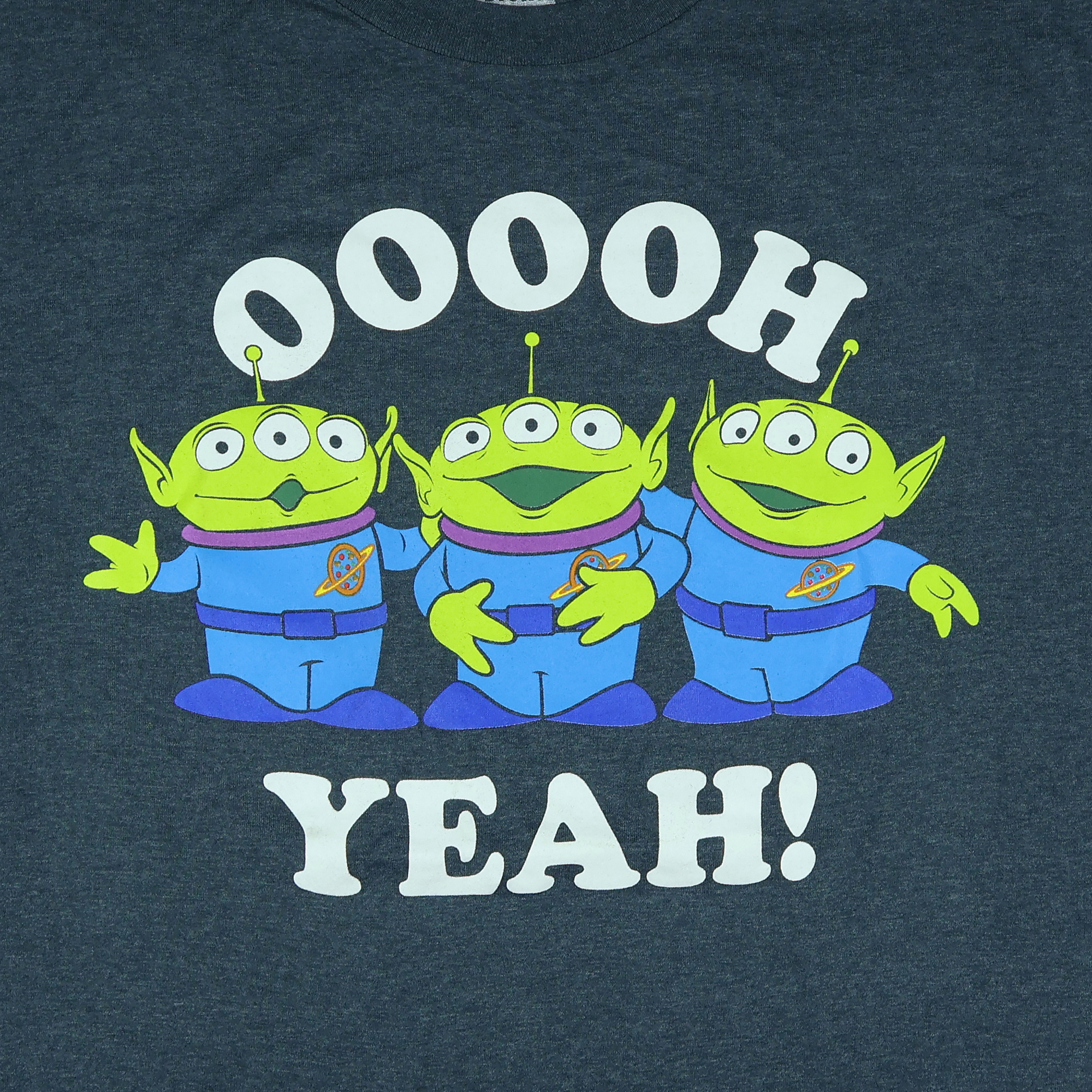 If you’ve always loved the little green aliens from Toy Story, this tee is made for you. The front graphic shows three lined up with the big “Oooh Yeah!” text, capturing that moment we all remember from Pizza Planet. The navy heather fabric gives it an easy, lived-in look, and the cotton/poly blend keeps it soft and breathable for everyday wear.