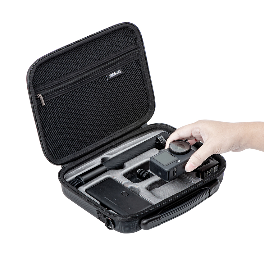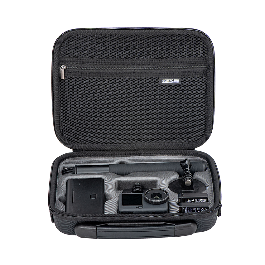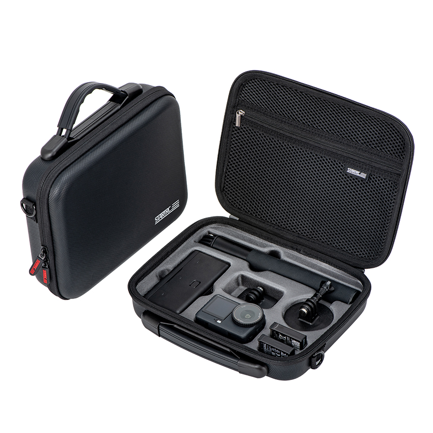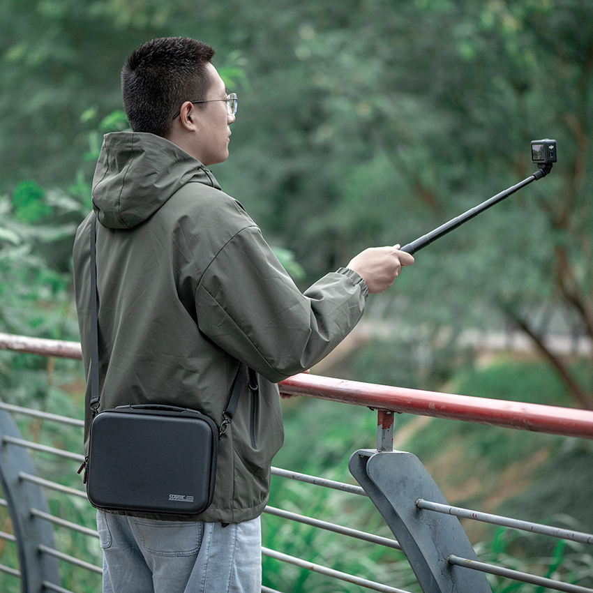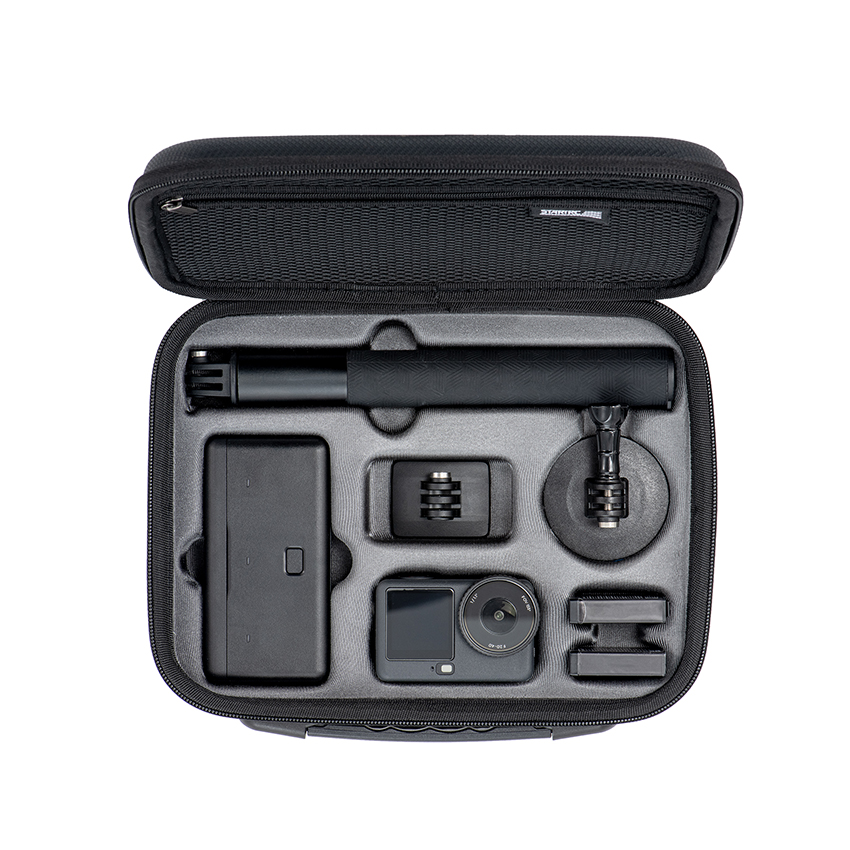 l The Action 6 Travel Case, specifically designed for the DJI OSMO ACTION 6, accommodates the Action 6, 1.5m official extension pole, charging hub, and circular base, providing comprehensive storage for the entire kit