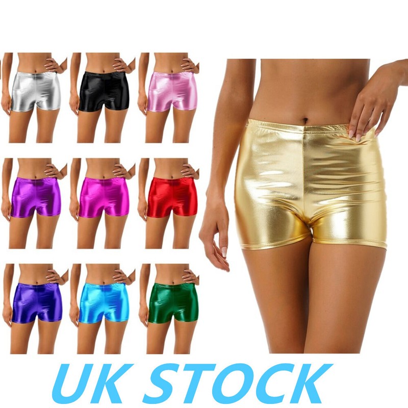 UK Womens Shiny Metallic Hot Pants Sexy Booty Shorts Club Party Shorts Clubwear