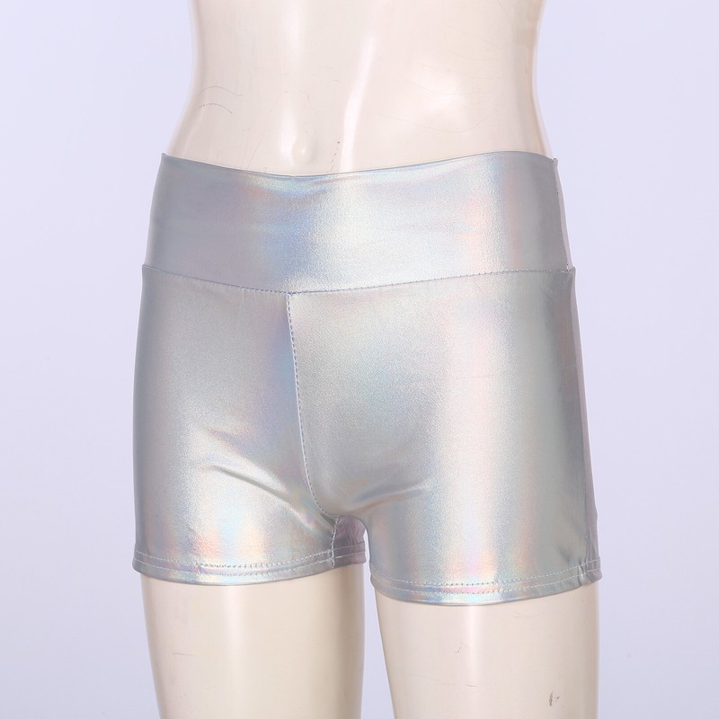 Women Shiny Metallic Booty Shorts Mid Waist Elastic Waistband Hot Pants.