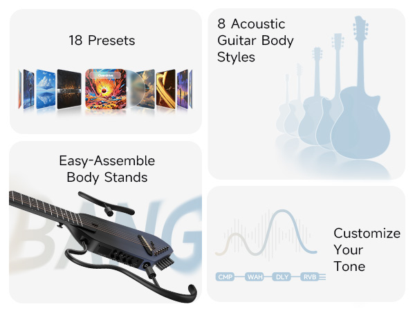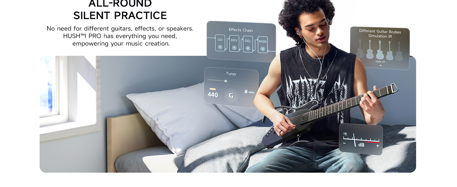 PLAY WITH STYLE - DONNER breaks the mold and lets you explore. 1 HUSH I PRO Guitar=18 effects(5 Modulation, 5 Delay, 5 Reverb, Overdrive, Compressor, Booster), plus 8 legendary guitar body tone simulations, 20 IR slots. Each tone envelops you in its unique atmosphere, with customizable music parameters. From subtle nuances to powerful combinations of effects, your creativity takes the lead.