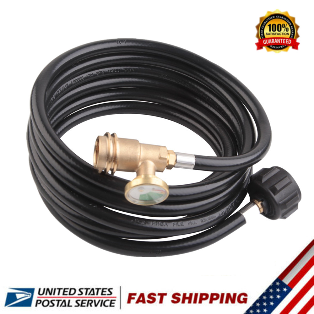 12FT BBQ Grill RV Propane Extension Hose with Gauge,Leak Detector Replacement US