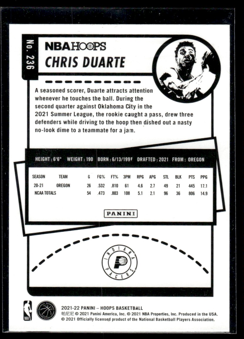 | 2021-22 Hoops Winter Chris Duarte Rookie Indiana Pacers #236 |