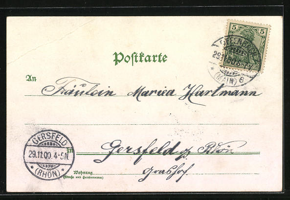 gelaufen 1900, Bugspur diag. oben re. bis re. oben, guter Zustand
