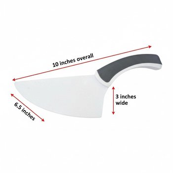Featuring a generous 10-inch overall length and a 3-inch wide blade, this tool makes portioning and serving your favorite pies, cakes, and desserts effortless. The 6.5-inch cutting edge provides precise slicing control while being gentle on your non-stick bakeware and delicate surfaces. The ergonomic gray and white handle offers a comfortable grip for steady serving.