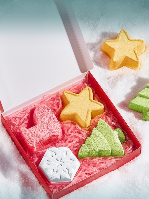 The set of four bath bombs is perfect for the Christmas holiday, adding a festive touch to your bath time and creating a warm and cozy atmosphere.