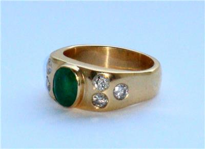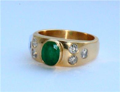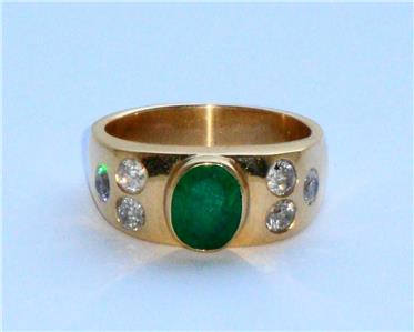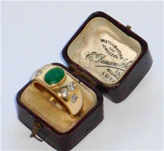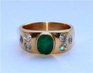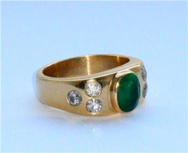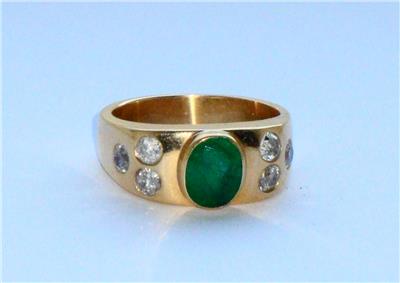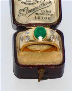 STUNNING VINTAGE VERY LARGE VERY HEAVY HIGH CARAT EMERALD & DIAMOND GOLD RING .