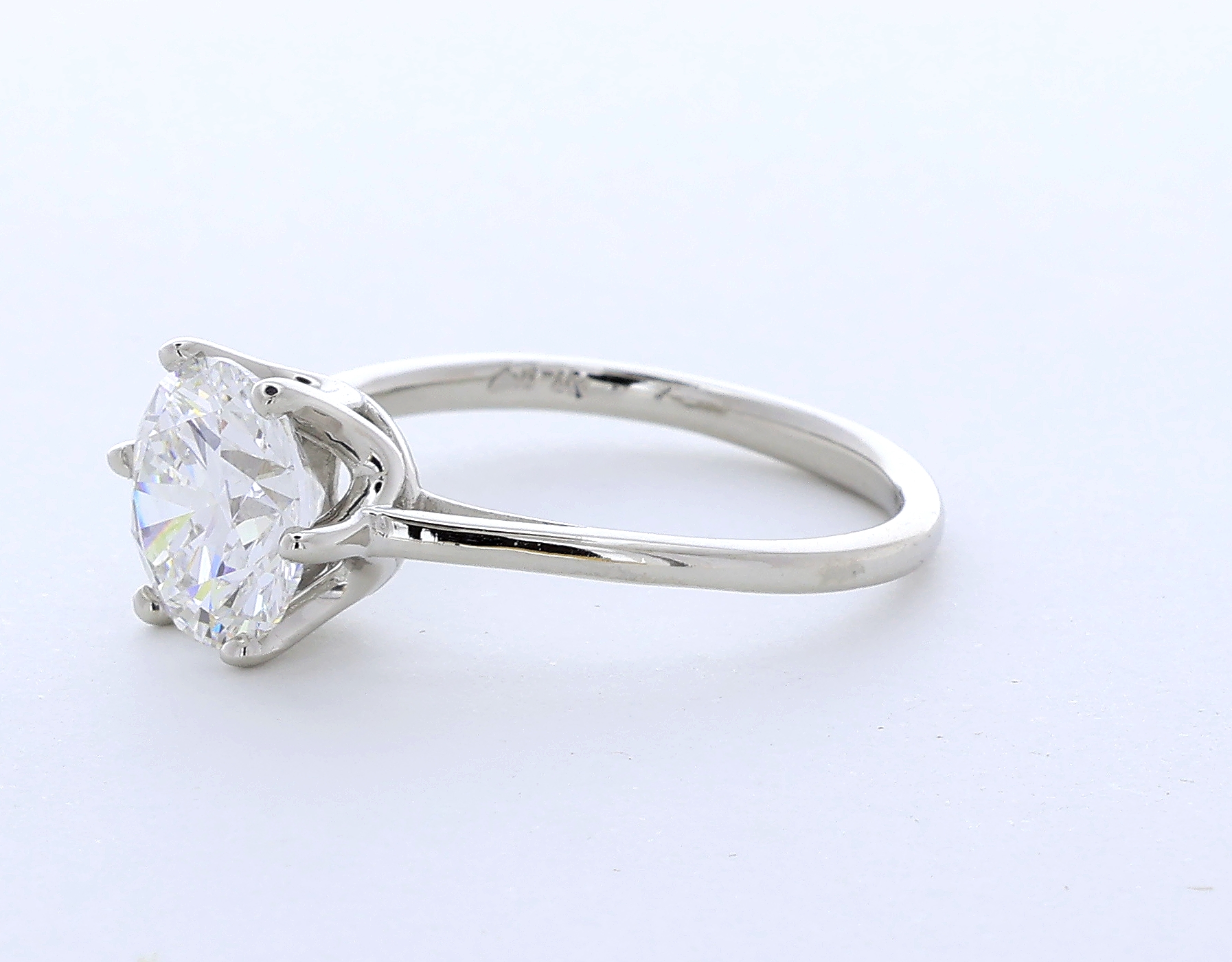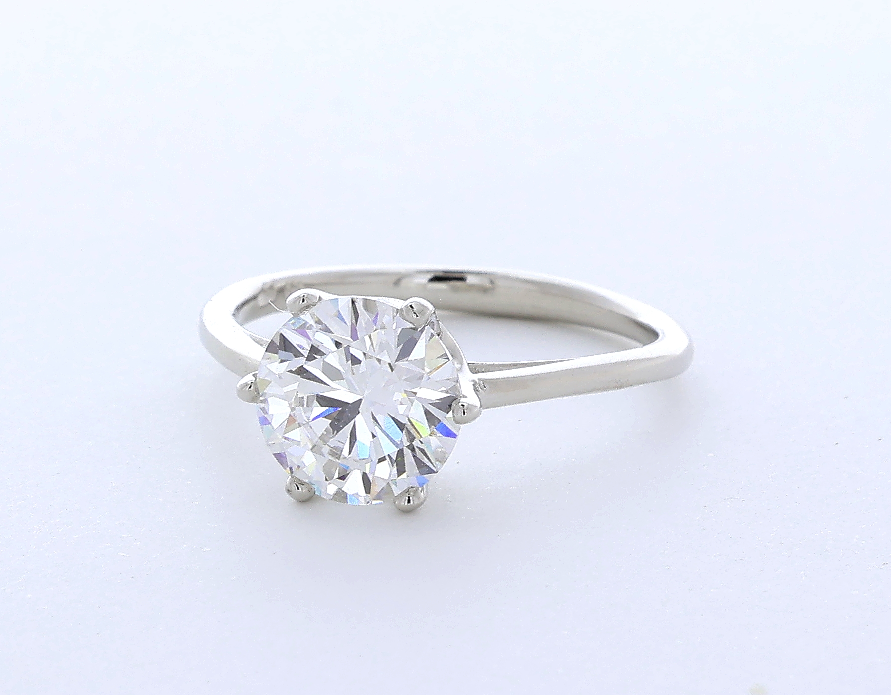 Solid 14K White Gold Solitaire Engagement Ring Classic AGI Cert 2.53 CT Round Lab-Grown Diamond E VS1