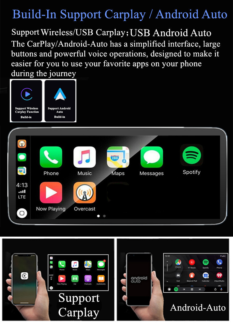| Support Carplay/Android Auto | -Build-In Support WIFI Wireless / USB Wired Carplay And USB Wired Android Auto. |