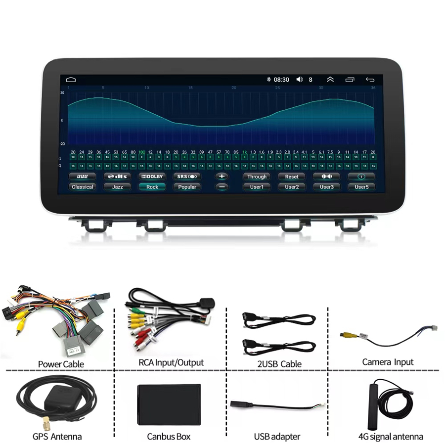 Accessories | -1 x Car Radio Stereo With Frame -1 x GPS Cable -2 x USB Cable -1 x Original Power Cable -1 x Canbus Box -1 x RCA/4G Cable -1 x Camera Input Cable -1 x USB Adapter -1 x 4G antenna -1 x user 's manua |