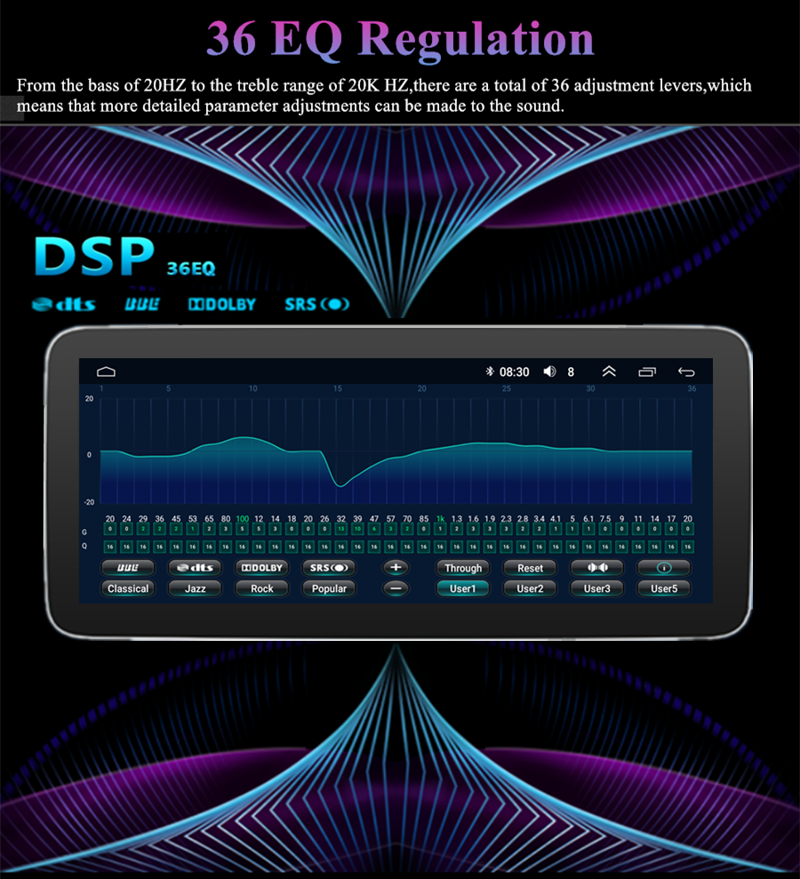 | DSP/EQ | Build-in DSP(dts/BBE/DOLBY/SRS...) ; 36EQ freely adjust |